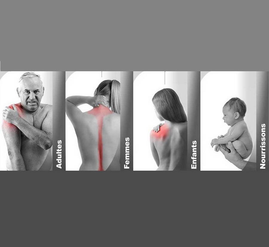 colonne vertébrale et les tissus musculaires ou organiques qui peuvent occasionner une douleur s'ils sont en dysfonction, comme le